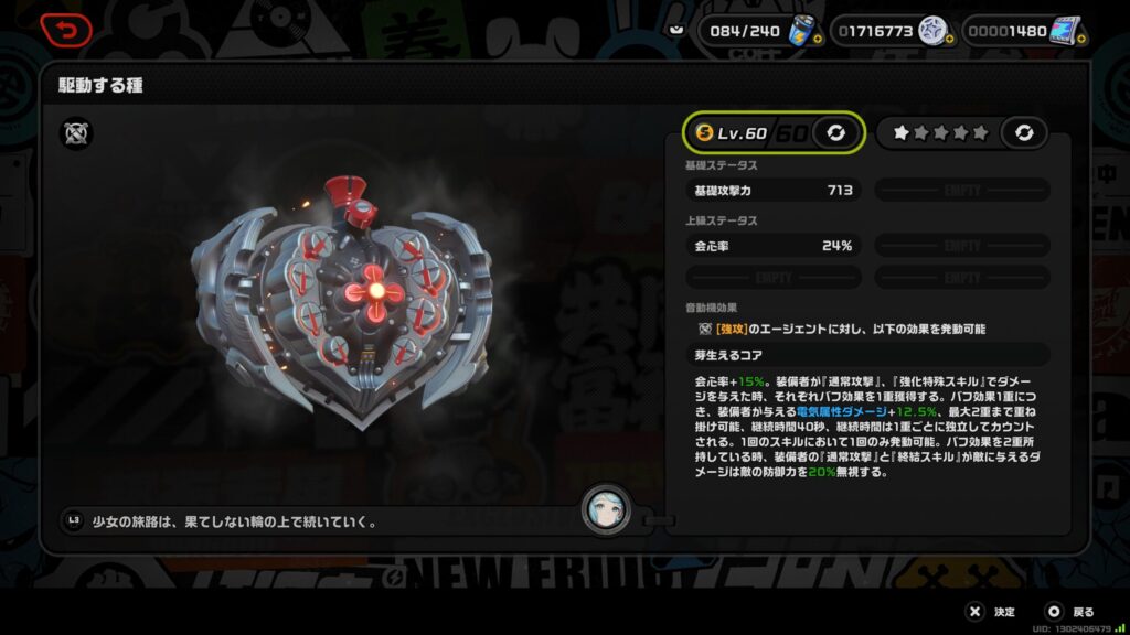 さらに電気属性ダメージ25%アップと通常攻撃、終結スキルが敵に与えるダメージは敵の防御力20%無視の効果もついているので、非常に強力です。