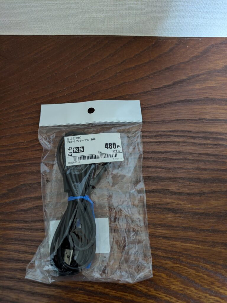 switchの充電器。これ100円ってめちゃめちゃ安いですよね・・・モバイルバッテリーにも使えちゃうし、予備として手元に置いておくため購入。